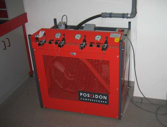 Seit dem Jahr 2002 können alle Feuerwehren ihre Atemschutzflaschen bei der Feuerwehr Dimbach füllen lassen. |